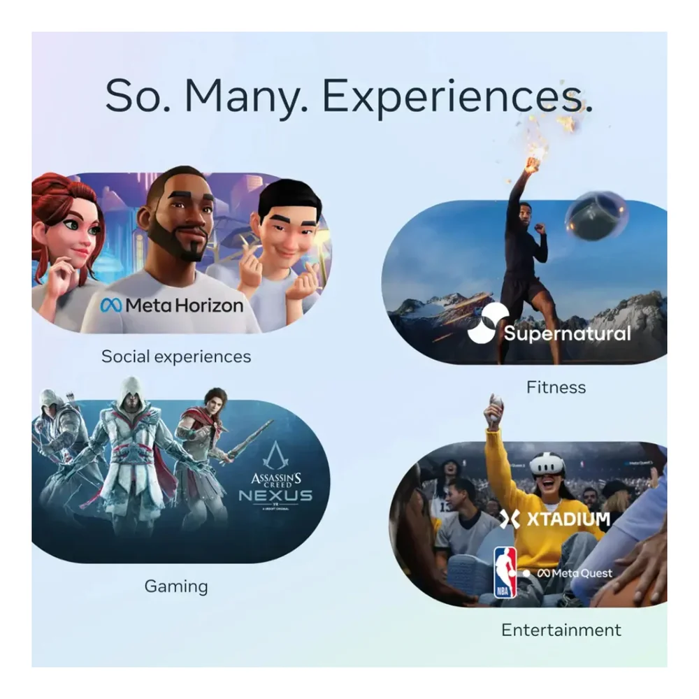 Explore a melhor biblioteca do mundo com mais de 500 aplicativos imersivos e encontre seu conteúdo favorito em jogos, fitness, bem-estar, entretenimento, experiências sociais e muito mais.